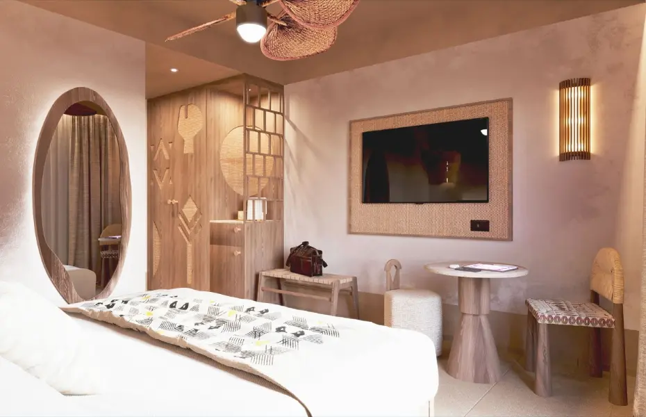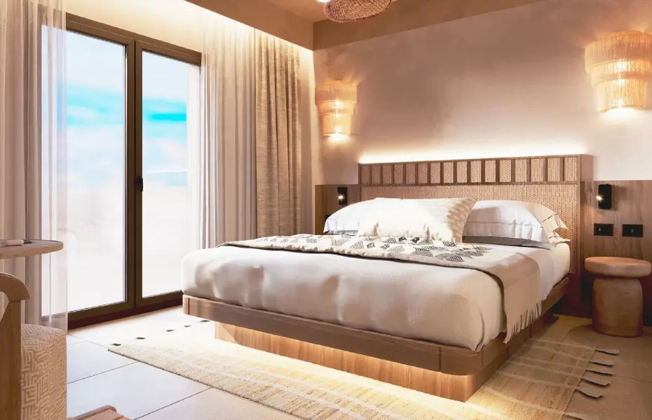 Camere e suite rinnovate, eleganti e rilassanti, dove lusso contemporaneo e tradizione sarda convivono in perfetto equilibrio, tra materiali naturali, tessuti ricercati, finiture artigianali e colori caldi ispirati alla terra e al mare. Ogni dettaglio è pensato per offrire un comfort profondo e un legame esclusivo con il territorio.