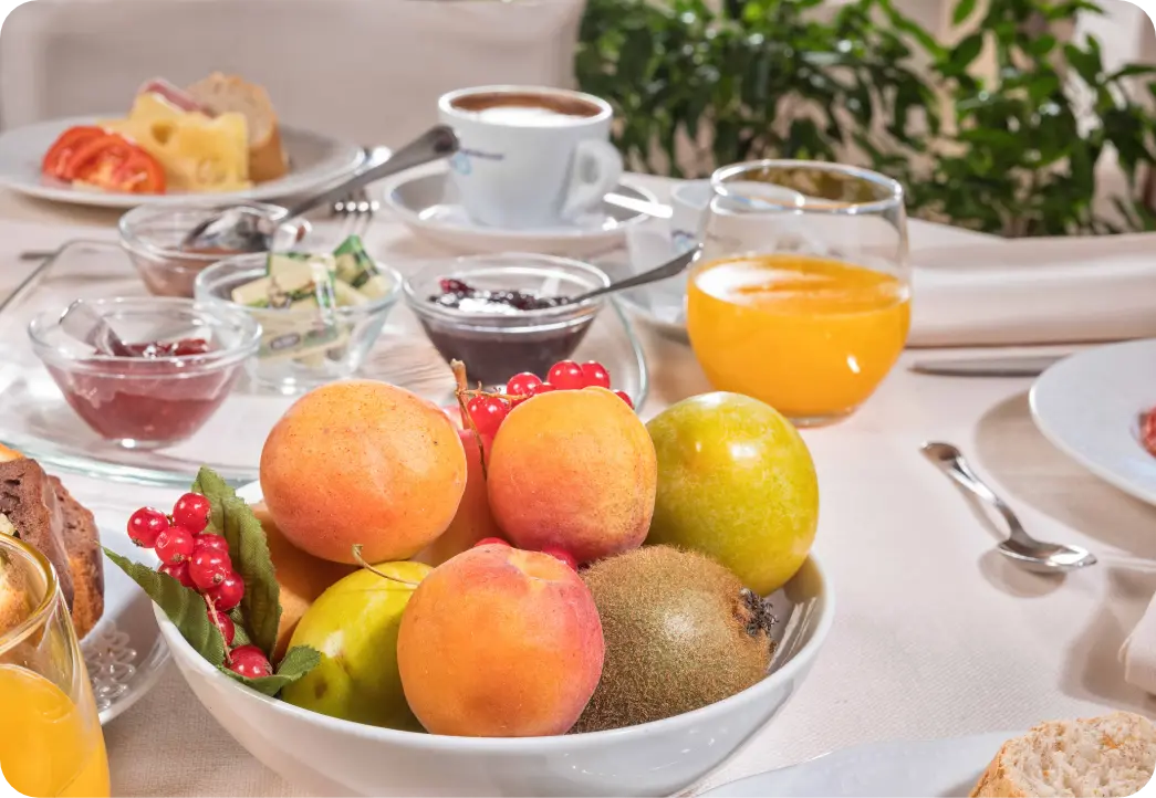 Ogni mattina vi accogliamo con una colazione raffinata che esalta la tradizione mediterranea accanto a proposte internazionali, pensate per un risveglio elegante e senza fretta.